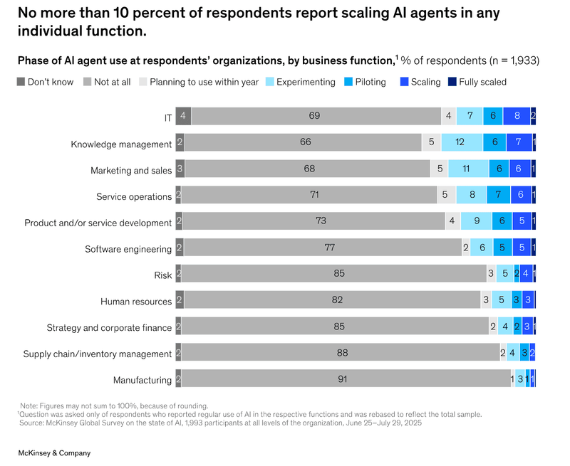 The McKinsey data shows that even as AI agents become mainstream, few companies have rewired how work actually flows.