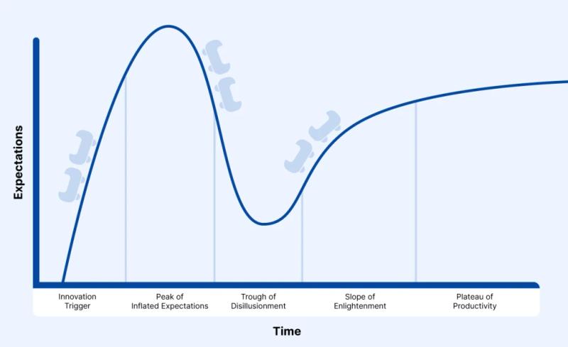 I am a big fan of Gartner’s hype cycle, which illustrates how technology matures. When it comes to current AI applications — particularly LLMs — their true value for enterprises is still being figured out. Right now, they’re nearing the peak of inflated expectations.